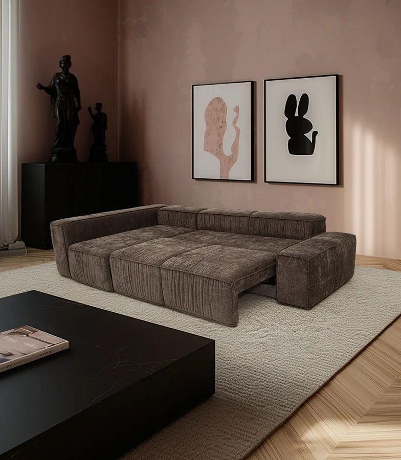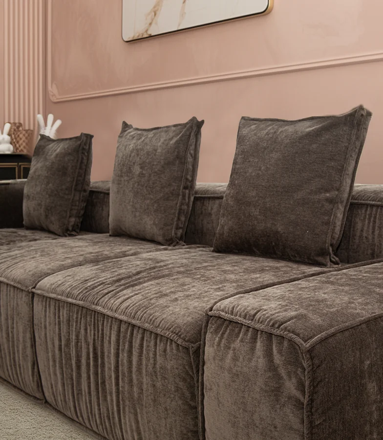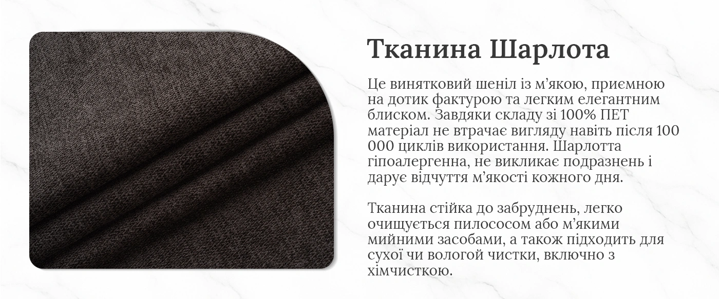 Думала, что он будет выглядеть массивно, но наоборот — благодаря четким линиям и низкой посадке он только добавляет простор. Ткань Шарлотта выглядит дорого, как велюр, но не затирается. Цвет взяла универсальный, подходит и к светлым шторам, и к темному полу.