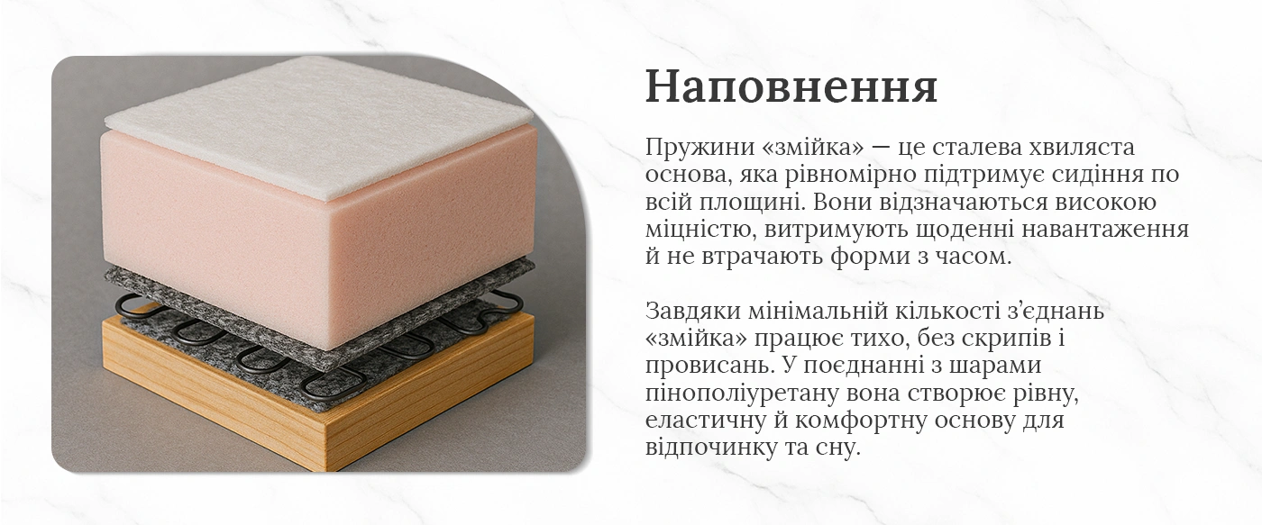 Замовляли диван Барселона без підлокітника — ідеально в нашу кімнату, де кожен сантиметр важливий)) Дуже вдячні, що можна було вибрати свій колір оббивки, бо хотілось щось світле, але не надто мазке. Обрали тканину під оксамит, виглядає дорого і тактильно приємна. Сидіти комфортно, наповнення (пінополіуретан + синтепон) дійсно тримає форму, не просідає. Розкладання «дельфін» працює плавно, навіть мама розкладає без зусиль. Модель без підлокітника вийшла ще й трохи дешевше — раціонально й гарно. Дуже задоволена!