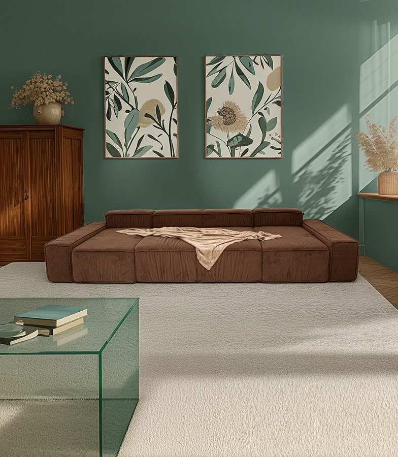Коли настає час відпочинку, Абель розкриває прихований потенціал. Крокуючий механізм “Пума” трансформує диван м’яко і вперед — без подряпин на підлозі й без зусиль. Спальне місце 3200×1520 мм — рівна й підтримувальна площина для щоденного сну, а не компроміс “для гостей”. Прокидаєшся без відчуття зім’ятості, бо наповнення працює як пружний матрац, тримаючи форму всю ніч.