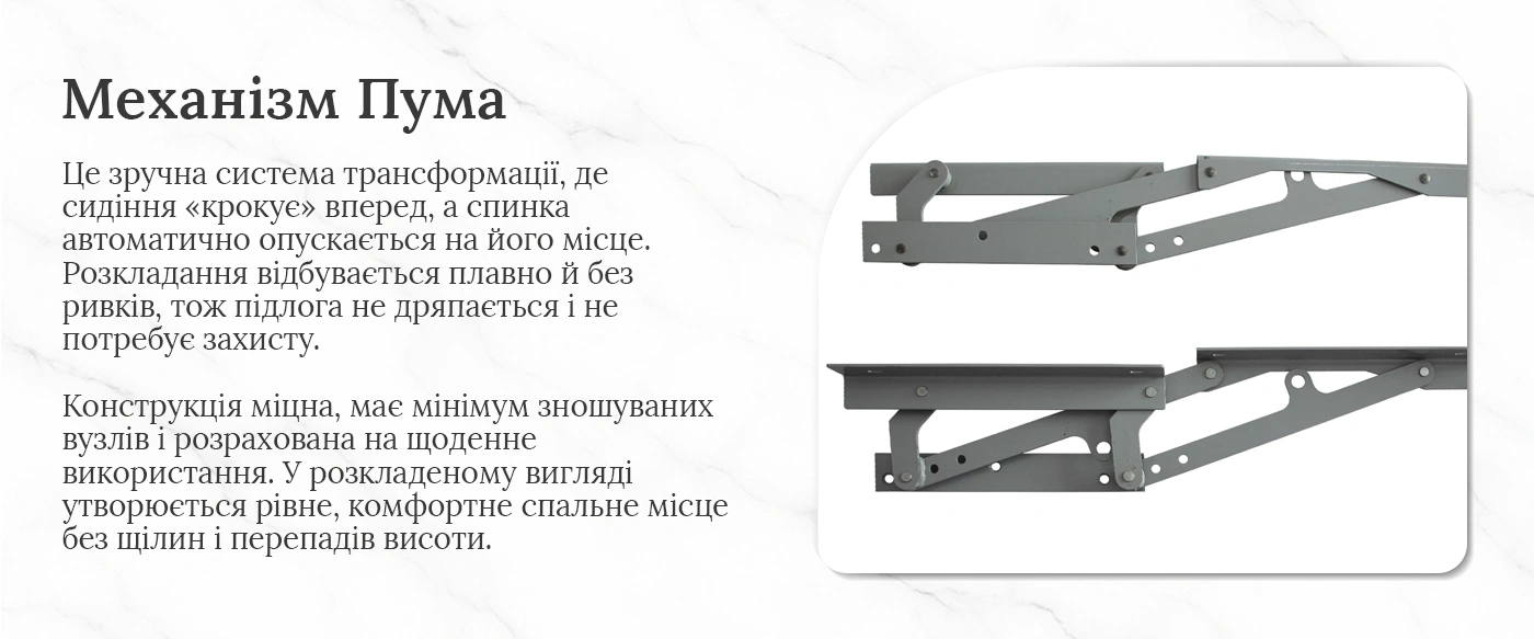 Коли приїжджає син з сім’єю — розкладається за секунду, нічого не скрипить, підлогу не шкрябає. Спальне місце виходить як хороше ліжко — без западин і перекосів.