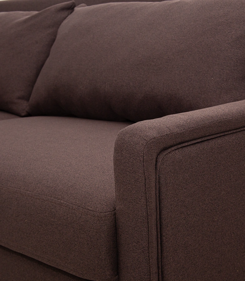 Беатріче — диван, що створює порядок у просторі: рівні лінії, тонкі підлокітники, впевнена посадка. Габарити 2180×1040 мм економлять метри, але не відчуття масштабу; висота 890 мм та посадка 435 мм тримають спину правильно й дозволяють зручно підвестися. У невеликій вітальні він виглядає лаконічно, у студіо — задає вісь інтер’єру. Дві великі подушки 940×500 працюють як мобільні спинки: під читання, під ноутбук, під довгі розмови.