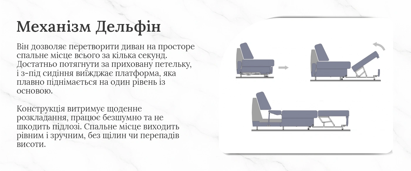 Дуже задоволений покупкою! Диван Барселона в реалі ще кращий, ніж на фото. Брали світлий бежевий, підійшов під інтер’єр, м’який, міцний корпус і великий простір для гостей. Дельфін механізм супер, легко розкладається. Хоч спершу переживав за доставку Новою Поштою (дорогувато), але привезли цілий. Переконали на свою доставку. Раджу всім