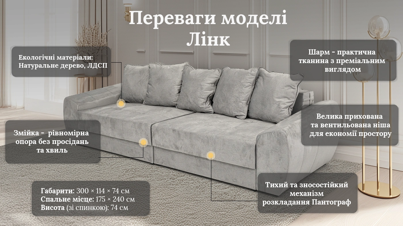 Диван Лінк 3-х місний — це поєднання візуальної легкості та справжнього функціонального комфорту. Він не кричить про себе, але щойно ви сідаєте — відчуваєте різницю. Плавні форми, продумана посадка, швидка трансформація у повноцінне ліжко й ідеальні пропорції — все, що потрібно для щоденного відпочинку без компромісів.