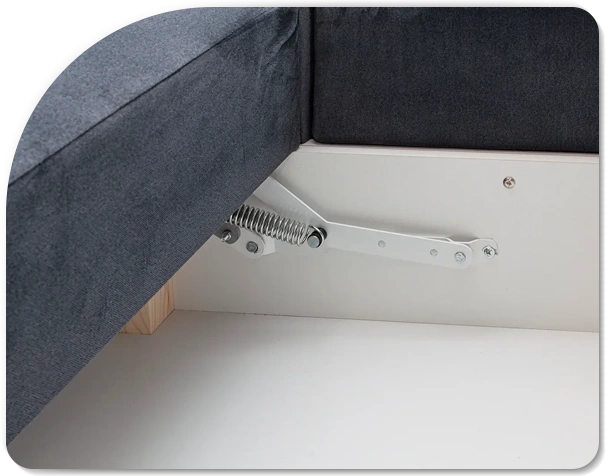 Ніша під сидінням – це зручний простір для зберігання постільної білизни, пледів чи сезонних речей. Вона допомагає економити місце в шафах і підтримувати порядок у кімнаті. Достатньо підняти сидіння, і все необхідне завжди під рукою.