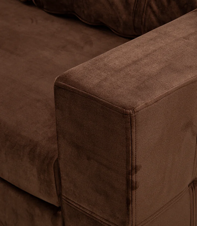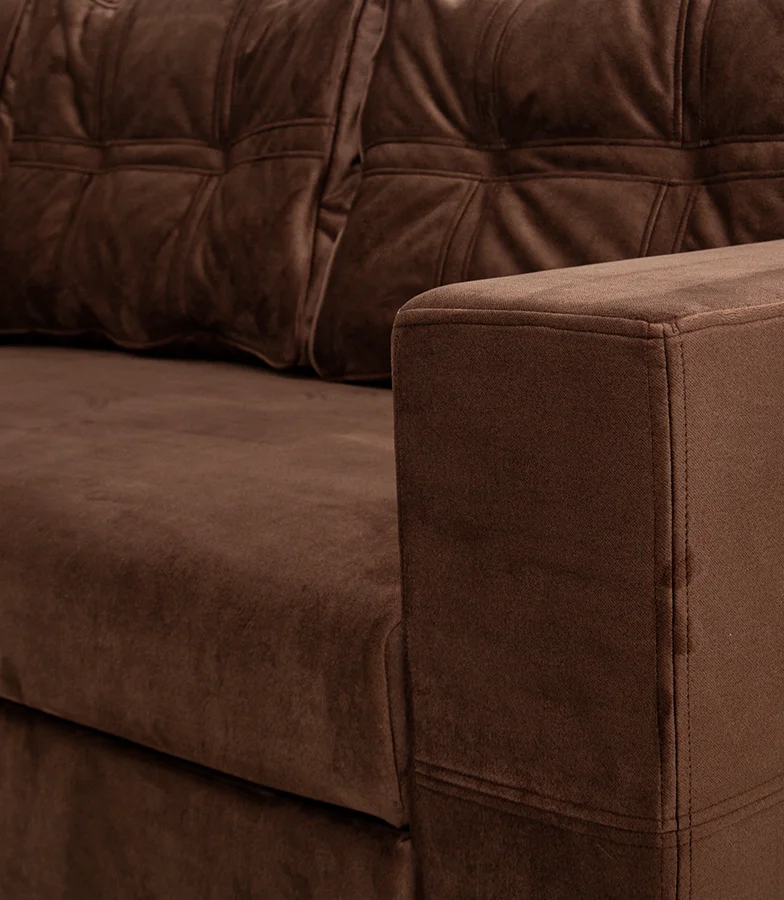 Комфорт Матео — результат інженерії. Основа на пружинній “змійці” гасить точкові навантаження, повсть 670 г/м² стабілізує еластичність, а два шари пінополіуретану по 100 мм щільністю 28 кг/м³ формують пружну, але не жорстку посадку. Синтепон 100 г/м² згладжує мікрорельєф, тож сидіти зручно годинами. Подушки з холофайбером тримають об’єм; кілька рухів долонею — і диван знову як зі сторінки каталогу. Баланс м’якості й підтримки відчувається одразу, наповнення не злежується роками.