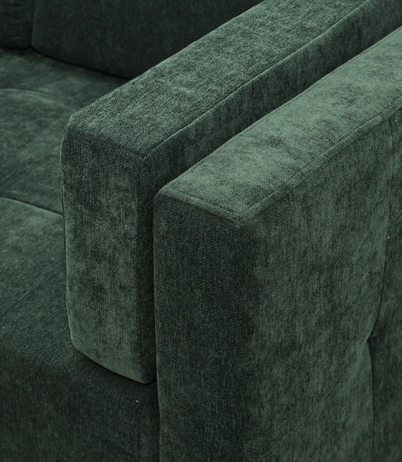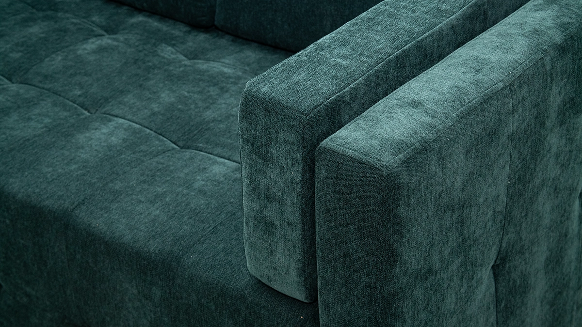 Комфорт Софії — інженерія в деталях. Усередині працює пружинний блок “бонель” висотою 100 мм, який рівномірно розподіляє вагу. Повсть 670 г/м² стабілізує основу, шар ППУ 30 мм щільністю 28 кг/м³ пом’якшує посадку, а синтепон 100 г/м² згладжує мікрорельєф. Три великі подушки 670×480 та дві акцентні 580×290 наповнені холофайбером: достатньо одного руху долонею — і диван знову виглядає як на рендері.