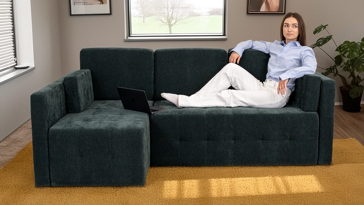 Виглядає строго, як я і хотів. Темно-сірий колір просто шик — на фоні світлих стін виглядає дорого. Подушки зручні, спинку тримають норм, але хотілося би щоб були трішки твердіш. Сидіти комфортно, хоч цілі вечори сиди. Для ноутбука — супер, нічого не тисне. Тканина приємна на дотик, не скользить. Тількі от сайт з ранку не відкривався, довелось чекати і потім ще раз дзвонити, шоб підтвердити замовлення. Але сам диван — топ, задоволений.
