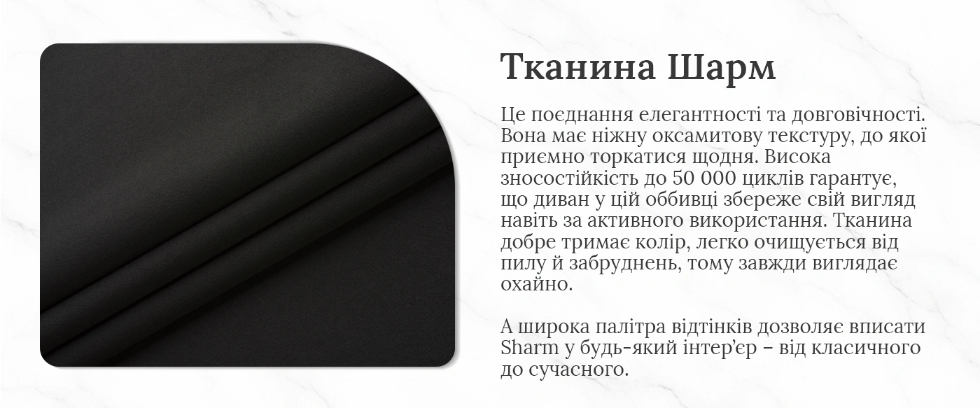 Сірий прямий розкладний диван Донато виконаний із велюру Sharm 95, що м’яко переломлює світло й не боїться щоденних випробувань. Каркас і основа спального місця з натурального дерева тримають форму навіть під активними іграми дітей та котів.